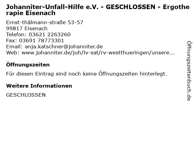 | Johanniter-Unfall-Hilfe e.V. - GESCHLOSSEN - Ergotherapie Eisenach anrufen | |