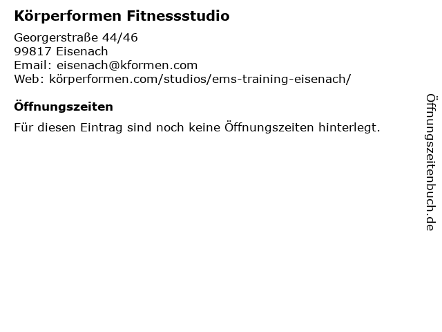 | Öffnungszeiten Körperformen Fitnessstudio in Eisenach anzeigen | |