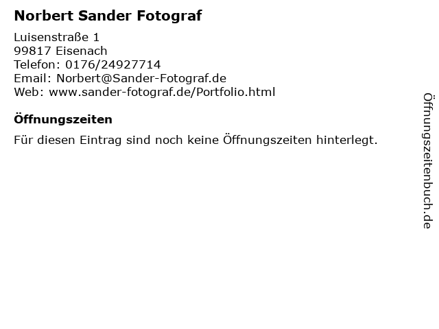 | Öffnungszeiten Norbert Sander Fotograf in Eisenach anzeigen | |