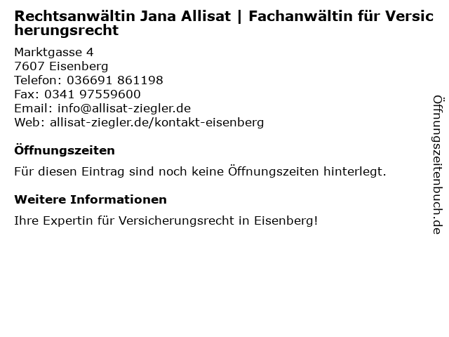 | Rechtsanwältin Jana Allisat | Fachanwältin für Versicherungsrecht anrufen | |