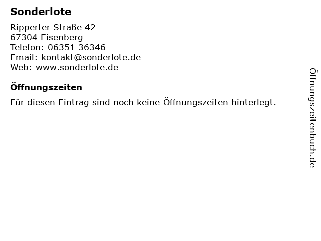 | Öffnungszeiten Sonderlote in Eisenberg anzeigen | |
