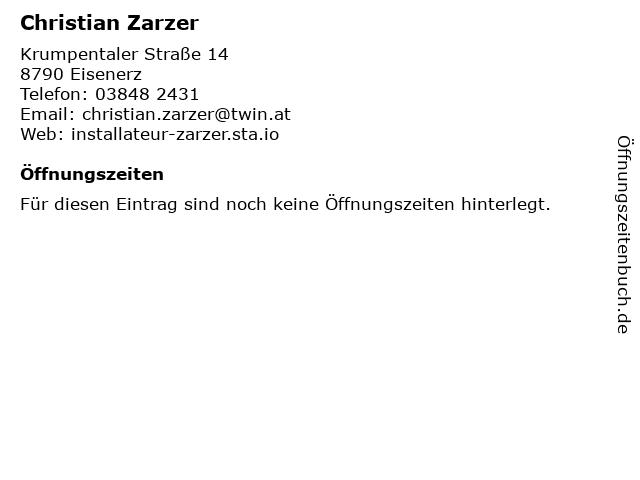 | Öffnungszeiten Christian Zarzer in Eisenerz anzeigen | |