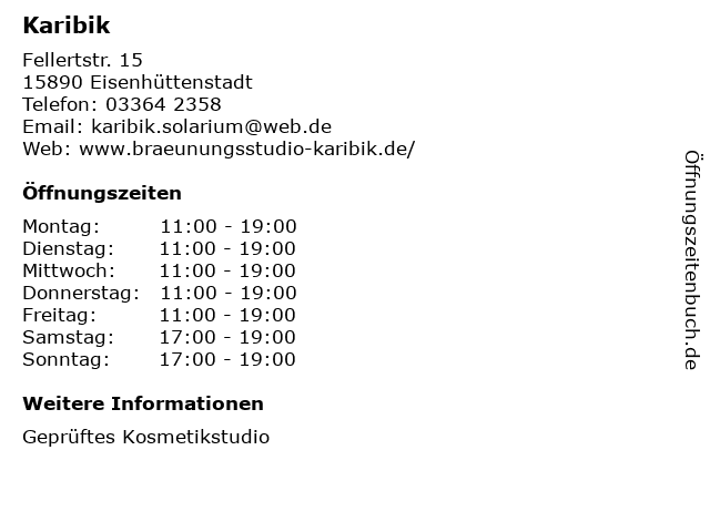 | Öffnungszeiten Karibik in Eisenhüttenstadt anzeigen | |