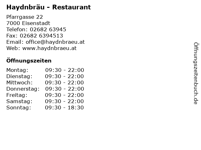 | Öffnungszeiten Haydnbräu - Restaurant in Eisenstadt anzeigen | |