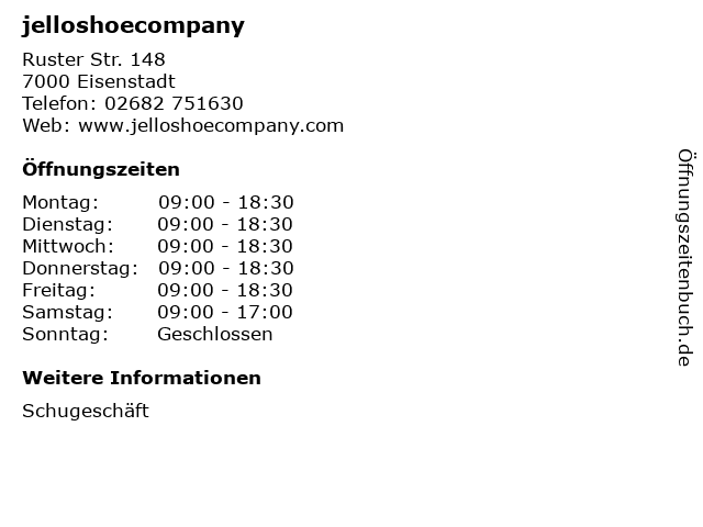 | Öffnungszeiten jelloshoecompany in Eisenstadt anzeigen | |