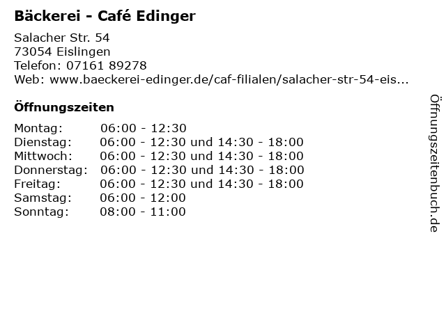 | Öffnungszeiten Bäckerei - Café Edinger in Eislingen anzeigen | |