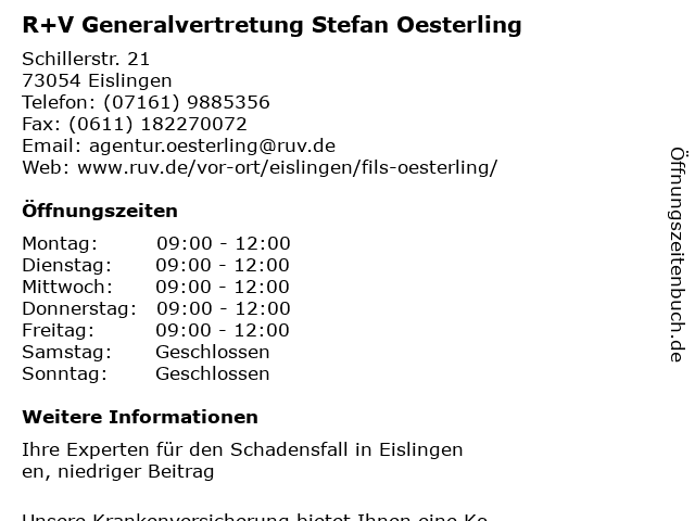 1 R+V Versicherung Göppingen - Generalvertretung Stefan Oesterling (Entfernung: 0,03 km) Manfred-Wörner-Straße 101, 73037 Göppingen 6 |