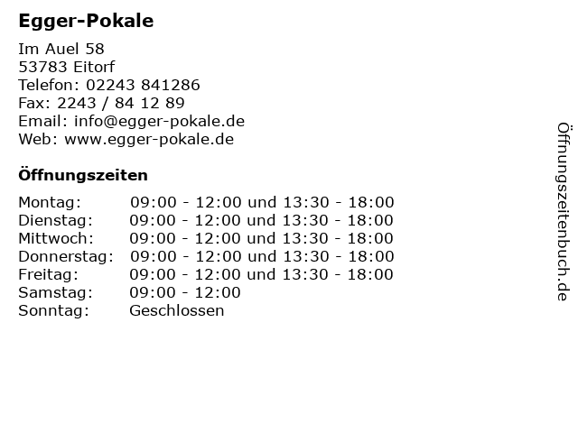 | Öffnungszeiten Egger-Pokale in Eitorf anzeigen | |