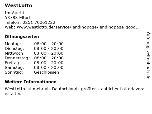 WestLotto in Eitorf: Telefonnummer, Öffnungszeiten und Adresse
