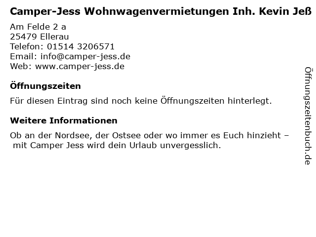 | Camper-Jess Wohnwagenvermietungen Inh. Kevin Jeß anrufen | |