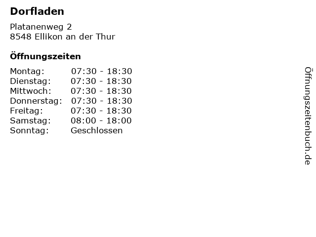 | Öffnungszeiten Dorfladen in Ellikon an der Thur anzeigen | |