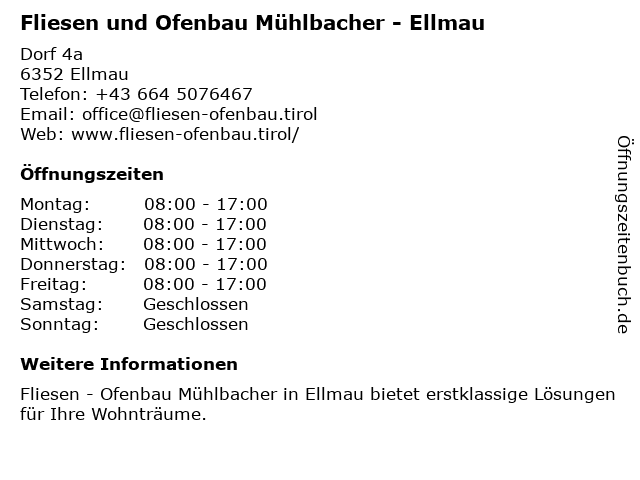 Branchen & Suchbegriffe zu Fliesen und Ofenbau Mühlbacher - Ellmau:badrenovierung, ellmau, fliesen, fliesen kufstein, fliesenarbeiten, fliesenfachhandel, fliesenleger, fliesenleger kufstein, fliesenlegermeister, fußbodenheizung, hafner, hafnermeister, kaminbau, mühlbacher, naturstein, naturstein kufstein, ofenbau, ofenbau kufstein, ofenbauer, ofensanierung, ofensetzer, ofensetzer kufstein |