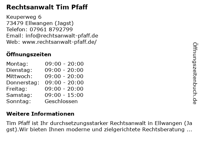 Branchen & Suchbegriffe zu Rechtsanwalt Tim Pfaff:pfaff, rechtsanwalt, tim |