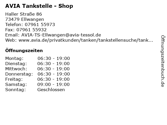 | Öffnungszeiten AVIA Tankstelle - Shop in Ellwangen anzeigen | |