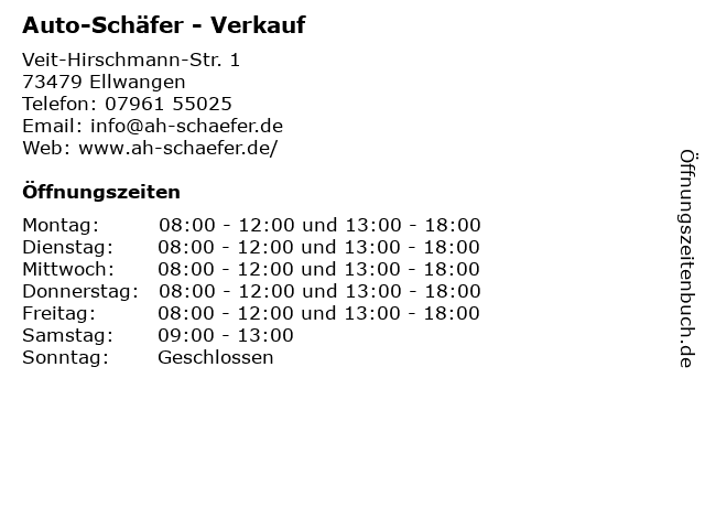 | Öffnungszeiten Auto-Schäfer - Verkauf in Ellwangen anzeigen | |