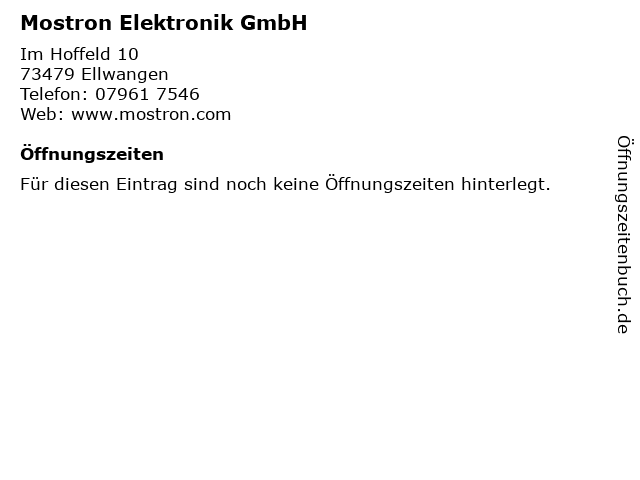 | Öffnungszeiten Mostron Elektronik GmbH in Ellwangen anzeigen | |