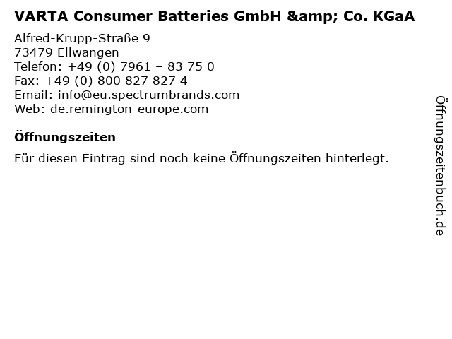 | VARTA Consumer Batteries GmbH & Co. KGaA anrufen | |