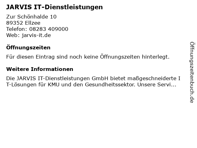 | Öffnungszeiten JARVIS IT-Dienstleistungen in Ellzee anzeigen | |