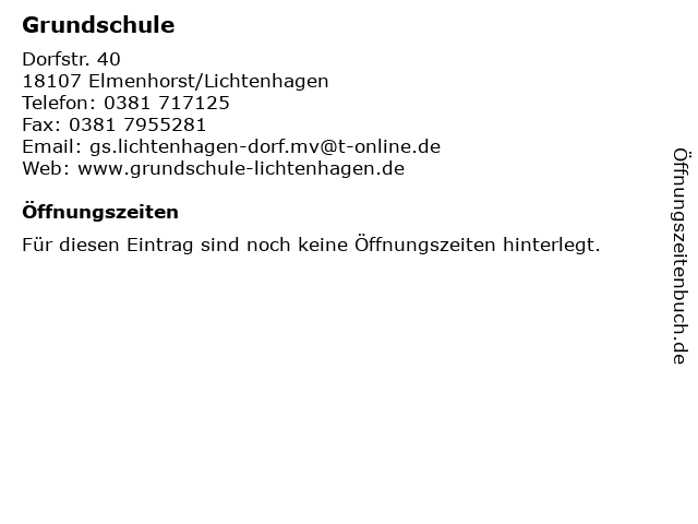 | Öffnungszeiten Grundschule in Elmenhorst/Lichtenhagen anzeigen | |