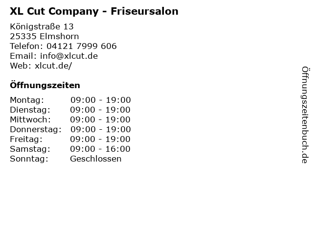 Öffnungszeiten XL Cut Company - Friseursalon in Elmshorn anzeigen