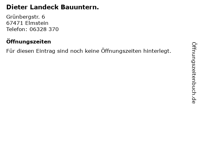 | Öffnungszeiten Dieter Landeck Bauuntern. in Elmstein anzeigen | |