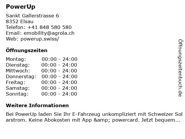 | Öffnungszeiten PowerUp in Elsau anzeigen | |