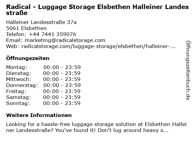 Branchen & Suchbegriffe zu Radical - Luggage Storage Elsbethen Halleiner Landesstraße:elsbethen, halleiner, landesstraße, luggage, luggage storage, luggage storage near me, radical, storage |