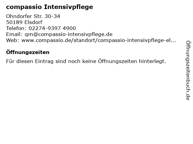 | Öffnungszeiten compassio Intensivpflege in Elsdorf anzeigen | |