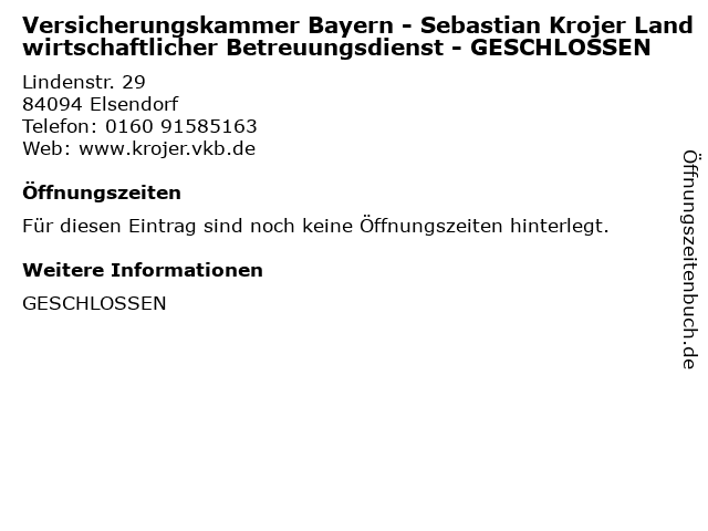 | Versicherungskammer Bayern - Sebastian Krojer Landwirtschaftlicher Betreuungsdienst - GESCHLOSSEN anrufen | |