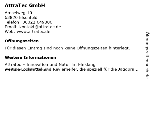 | Öffnungszeiten AttraTec GmbH in Elsenfeld anzeigen | |