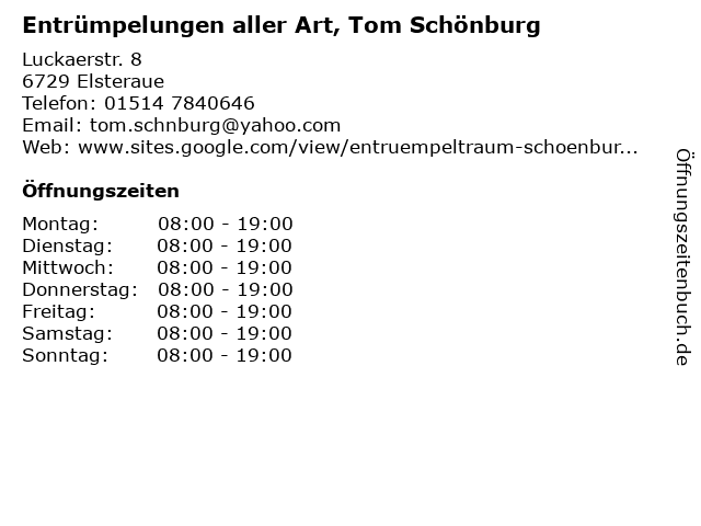 Branchen & Suchbegriffe zu Entrümpelungen aller Art, Tom Schönburg:aller, art, entrümpelungen, schönburg, tom |