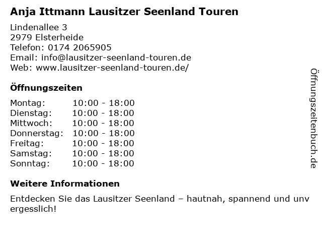 Branchen & Suchbegriffe zu Anja Ittmann Lausitzer Seenland Touren:anja, ittmann, lausitzer, seenland, touren |