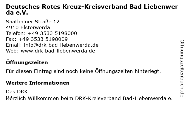 | Deutsches Rotes Kreuz-Kreisverband Bad Liebenwerda e.V. anrufen | |