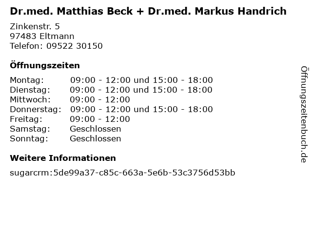 Branchen & Suchbegriffe zu Dr.med. Matthias Beck + Dr.med. Markus Handrich:beck, dr.med., handrich, markus, matthias |