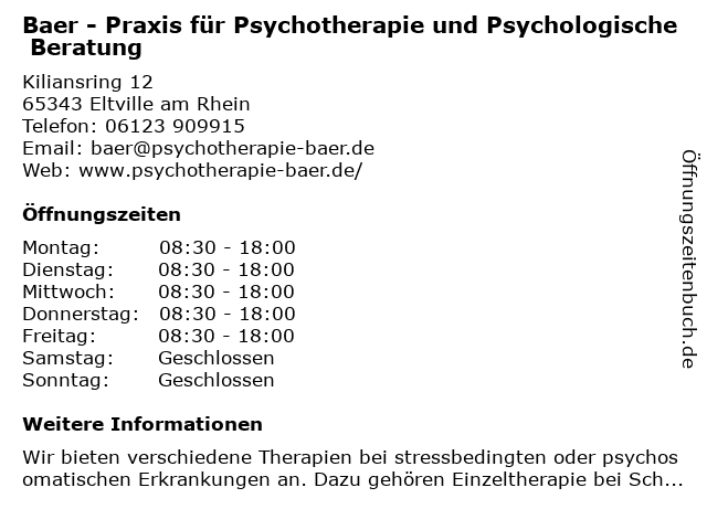 Branchen & Suchbegriffe zu Baer - Praxis für Psychotherapie und Psychologische Beratung:baer, beratung, praxis, psychologische, psychotherapie |