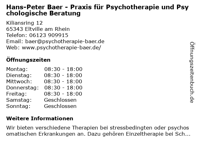 Branchen & Suchbegriffe zu Hans-Peter Baer - Praxis für Psychotherapie und Psychologische Beratung:baer, beratung, hans, peter, praxis, psychologische, psychotherapie |