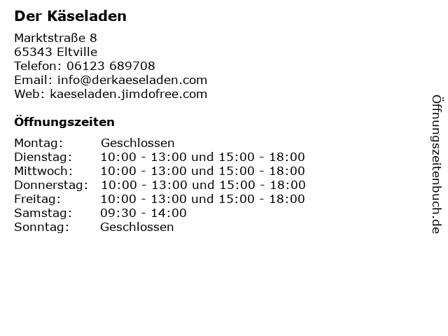 | Öffnungszeiten Der Käseladen in Eltville anzeigen | |