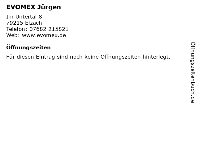 | Öffnungszeiten EVOMEX Jürgen in Elzach anzeigen | |