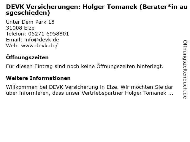 | DEVK Versicherungen: Holger Tomanek (Berater*in ausgeschieden) anrufen | |