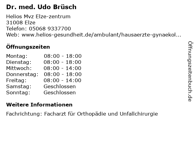 Dr. med. Udo Brüsch in Elze | Telefonnummer, Öffnungszeiten und Adresse