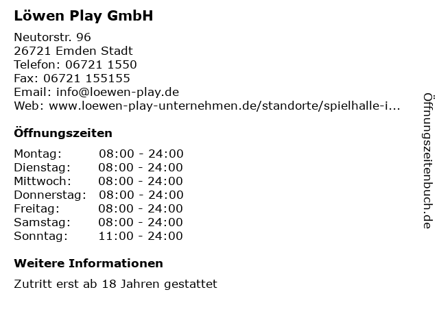 | Adresse Löwen Play GmbH in Emden Stadt anzeigen |