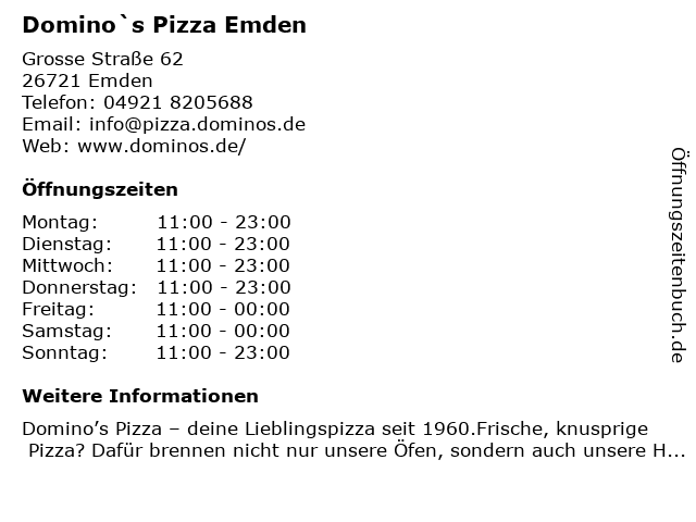 | Öffnungszeiten Domino`s Pizza Emden in Emden anzeigen | |