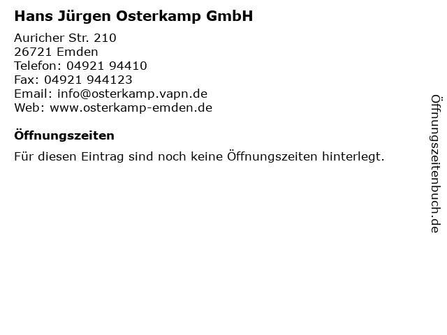 | Öffnungszeiten Hans Jürgen Osterkamp GmbH in Emden anzeigen | |