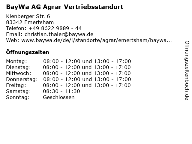 6 BayWa Bau- & Gartenmärkte GmbH & Co. KG Traunreut (Entfernung: 14,56 km) Trostberger Straße 21, 83301 Traunreut |