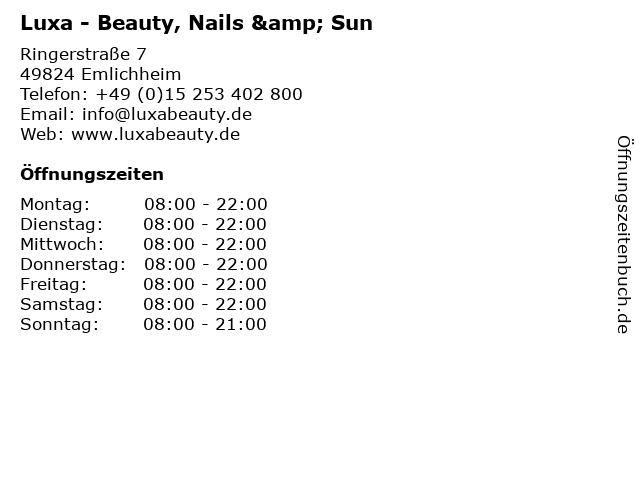 1 Profi-Sun GmbH & Co.KG Sonnenstudio - Service- und Beratungszeiten (Entfernung: 12,57 km) Am Markt 11, 49843 Uelsen 6 |