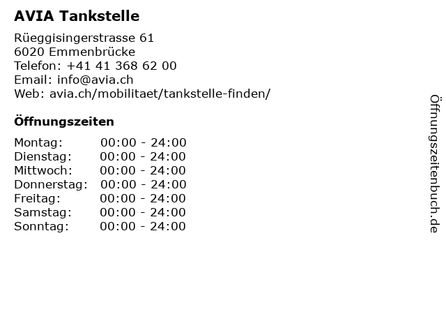 | Öffnungszeiten AVIA Tankstelle in Emmenbrücke anzeigen | |