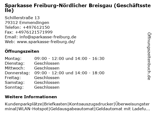 Branchen & Suchbegriffe zu Sparkasse Freiburg-Nördlicher Breisgau (Filiale):breisgau, nördlicher, sparkasse |