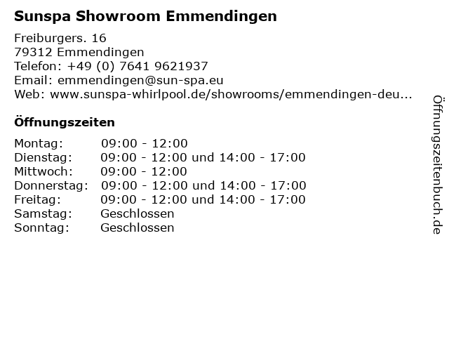 Branchen & Suchbegriffe zu Sunspa Showroom Emmendingen:showroom, sunspa, whirlpool |