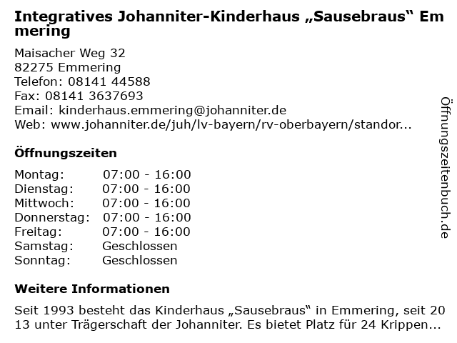Branchen & Suchbegriffe zu Integratives Johanniter-Kinderhaus „Sausebraus“ Emmering:agentur für kinderbetreuung, emmering, gemeinnützige organisation, hilfsorganisation, integratives, johanniter, kinderhaus, sozialarbeit, verband, wohlfahrtseinrichtung, „sausebraus“ |
