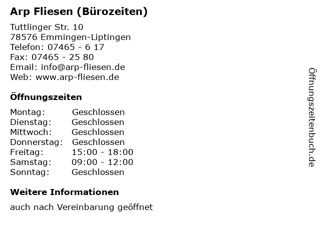 Branchen & Suchbegriffe zu Arp Fliesen (Bürozeiten):arp, bürozeiten, fliesen, fliesengeschäft, fliesenleger |